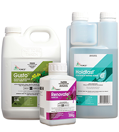 The example below uses the GUSTO herbicide rate required for hard to control woody weeds and the RENOVATE herbicide & HOLDFAST penetrant and wetting agent rates for bracken/blackberry and other hard to kill woody & noxious weeds in native grass pastures*