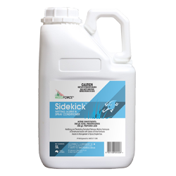Weed Force Sidekick Wetting Agent & Spray Conditioner will reduce the number of fine droplets (<150micron) produced by flat fan nozzles, without increasing the number of large spray droplets (>400micron). Weed Force Sidekick Wetting Agent & Spray Conditioner will reduce the fine droplets associated with, but not eliminate, off-target movement of the pesticide being used. This is contingent upon good agricultural spraying practice and appropriate nozzle choice.